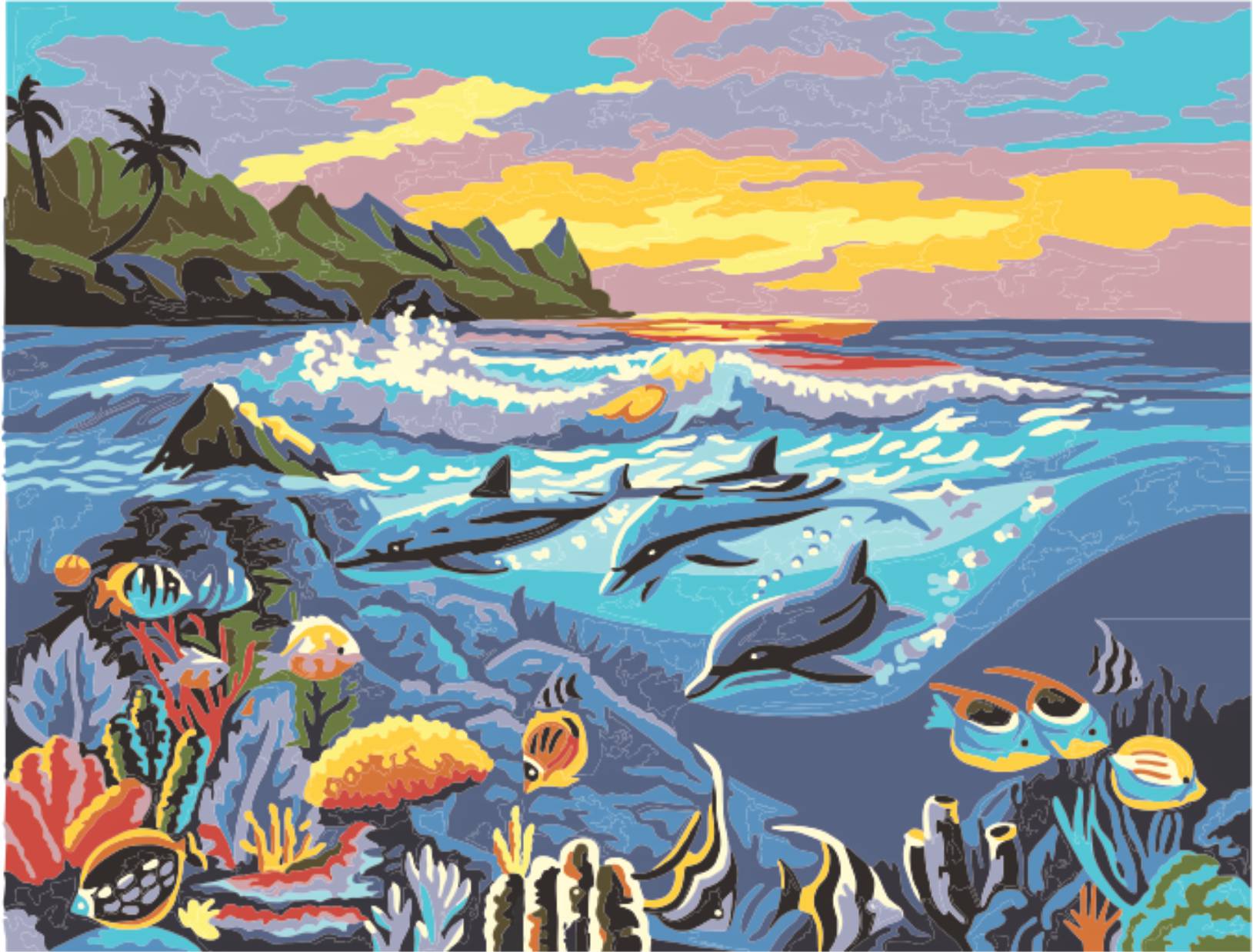 The paintings are stamped on canvas in khaki N8 or N7 depending on the design, with colour for ease of embroidery.