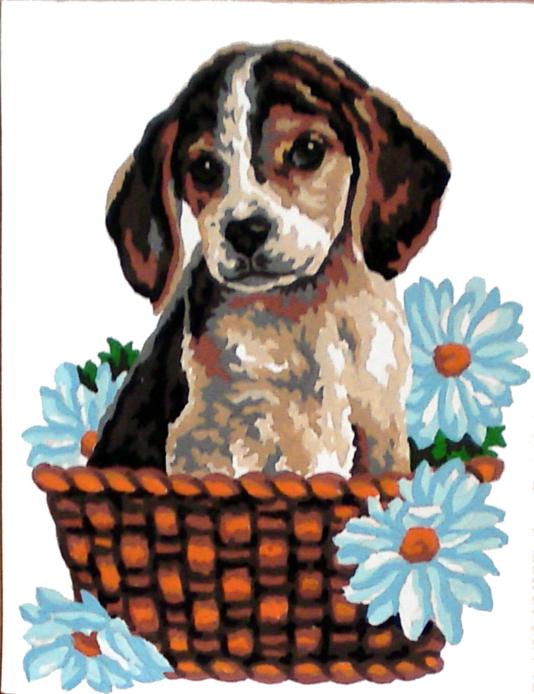The paintings are stamped on canvas in khaki N8 or N7 depending on the design, with colour for ease of embroidery.