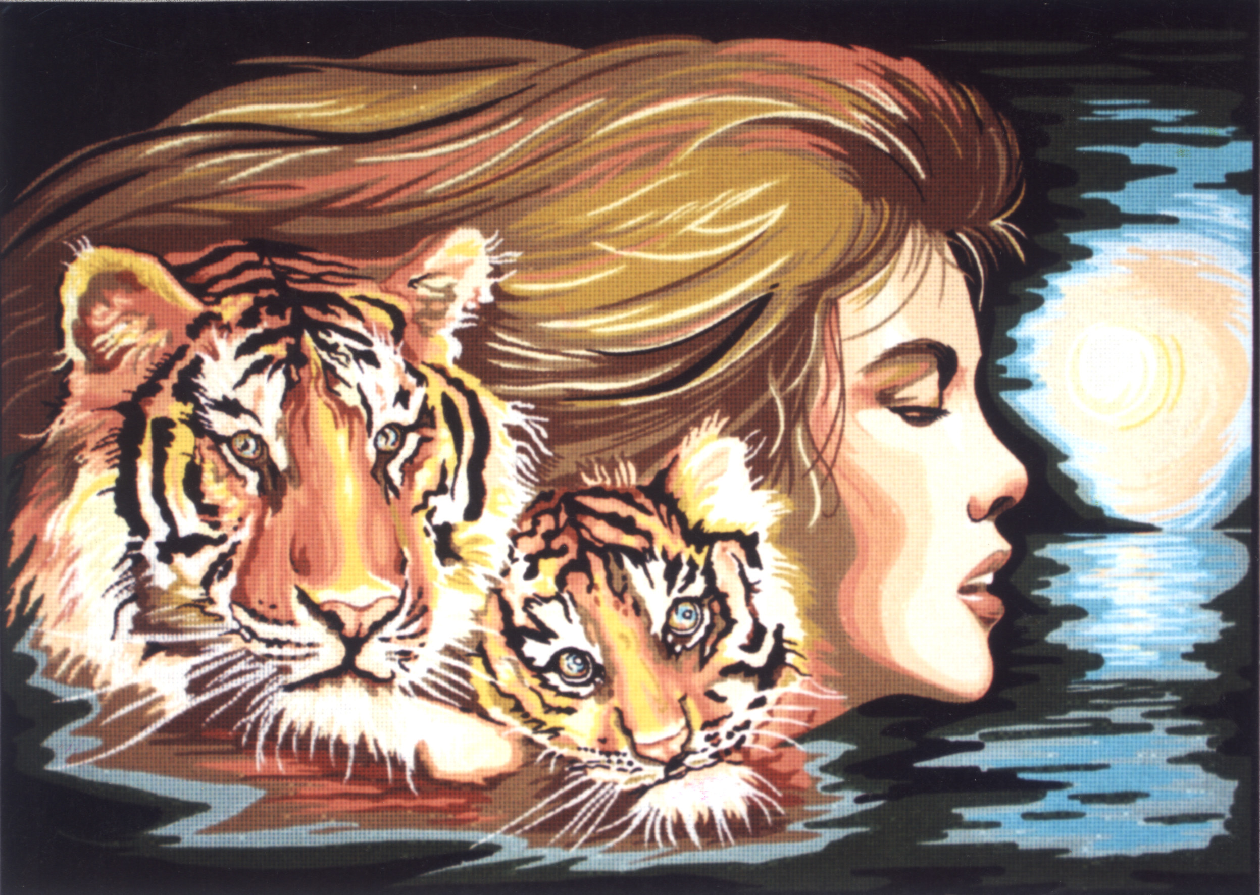 The paintings are stamped on canvas in khaki N8 or N7 depending on the design, with colour for ease of embroidery.