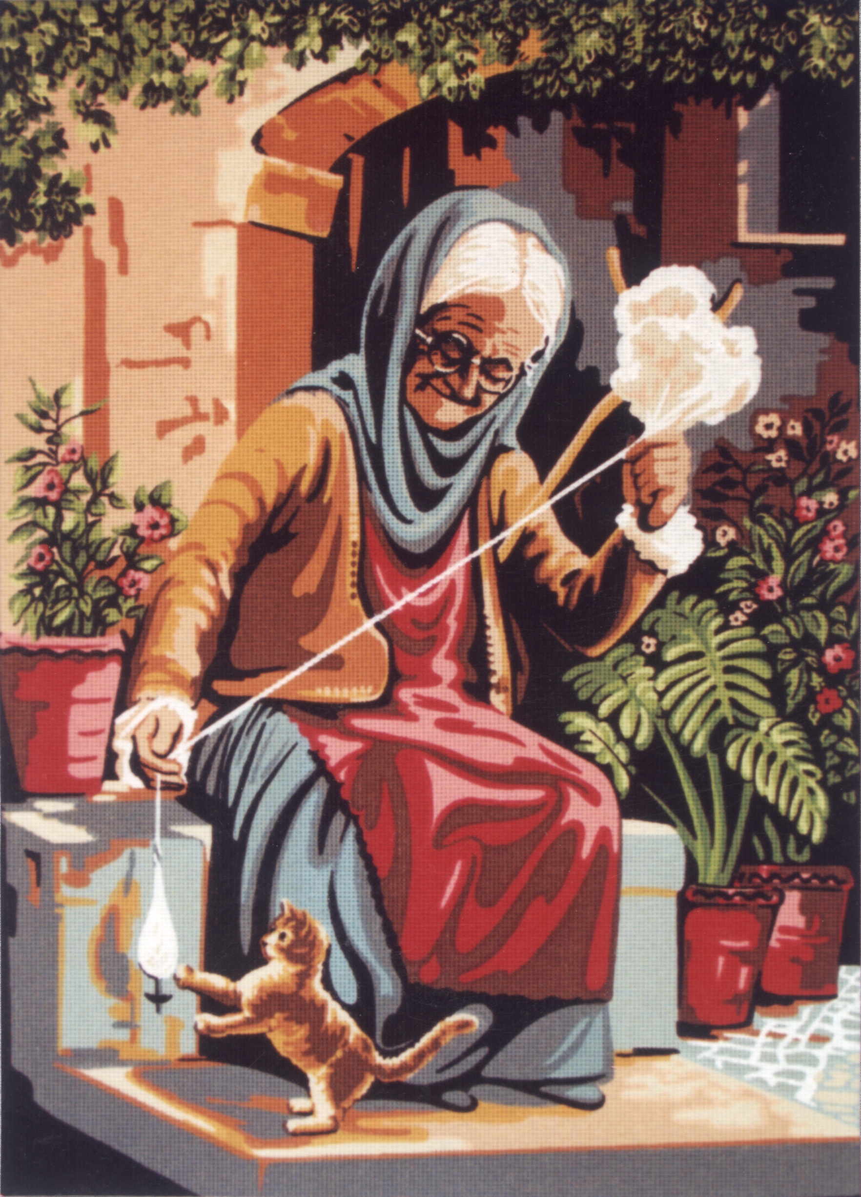 The paintings are stamped on canvas in khaki N8 or N7 depending on the design, with colour for ease of embroidery.