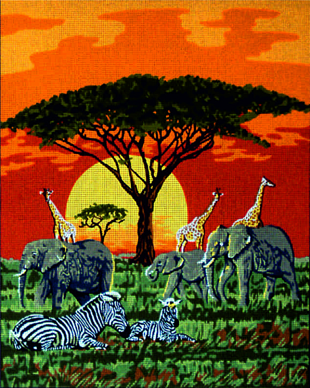 The paintings are stamped on canvas in khaki N8 or N7 depending on the design, with colour for ease of embroidery.