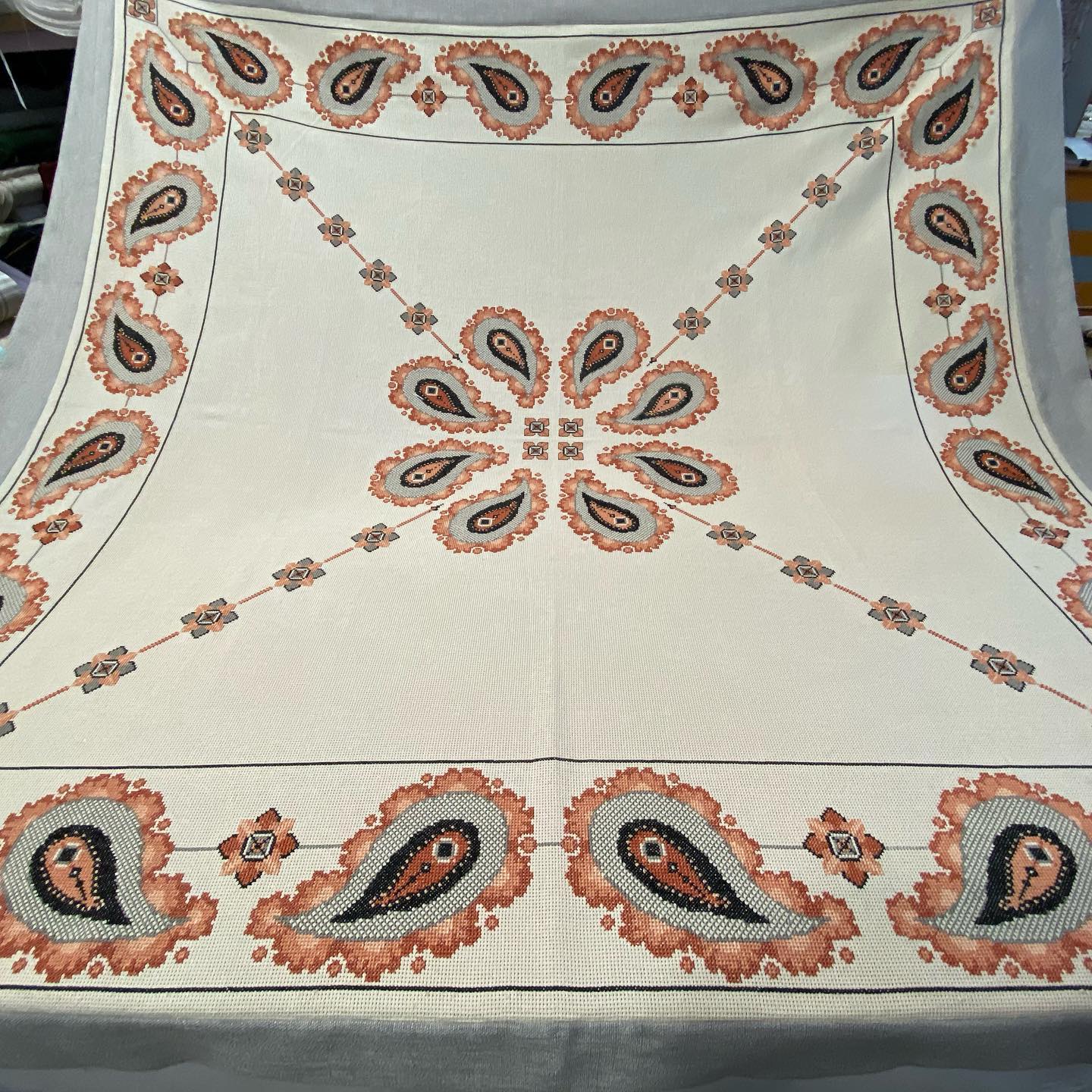 El bastidor de mesa bordado de 1,40 * 1,40 metros es la forma ideal de añadir una sensación de lujo a su espacio. Fabricado con tejido resistente y decorado con hermosos bordados, este bastidor de mesa impresionará a cualquier invitado. La detallada artesanía hecha a mano muestra el amor y la atención prestados a cada detalle. Actualice su mesa de centro o de comedor con esta pieza única y cree un ambiente único en su espacio. Deje que el bordado en efectivo realce su estética y estilo en cualquier reunión o celebración. Descubra la belleza y la calidad de la costura a mano con este bordado de sobremesa único.