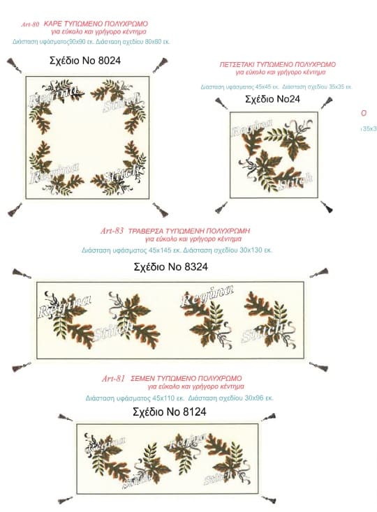 | Elección del bordado | Todo el conjunto, El conjunto con hilos, Traverse, Manta con hilos, Marco, Marco con roscas, Colcha, Pañuelo con hilos, Semen, Semen con hilos, Cuadro, Marco de mesa con roscas |
