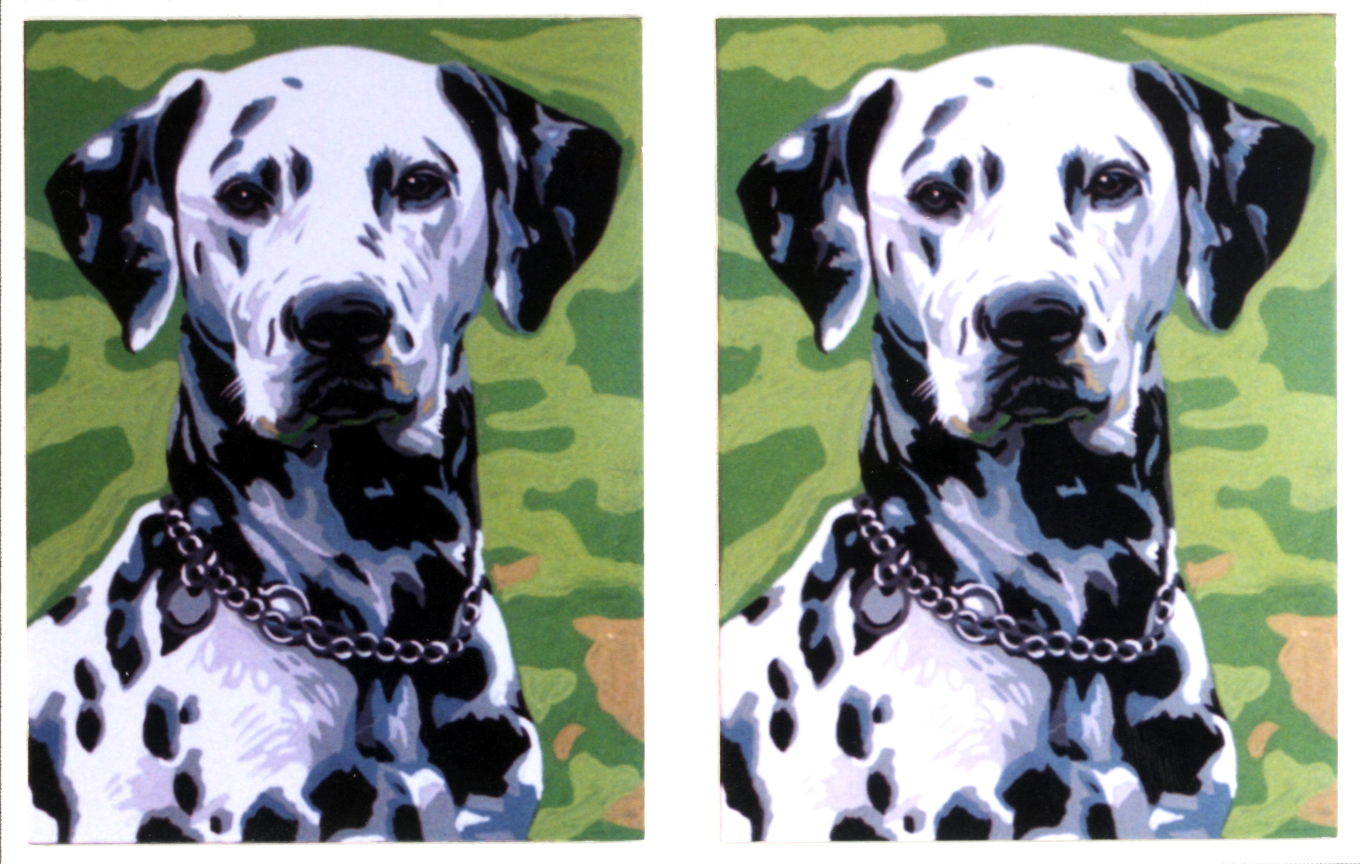 I dipinti sono stampati su tela in kaki N8 o N7 a seconda del disegno, con colore per facilitare il ricamo.