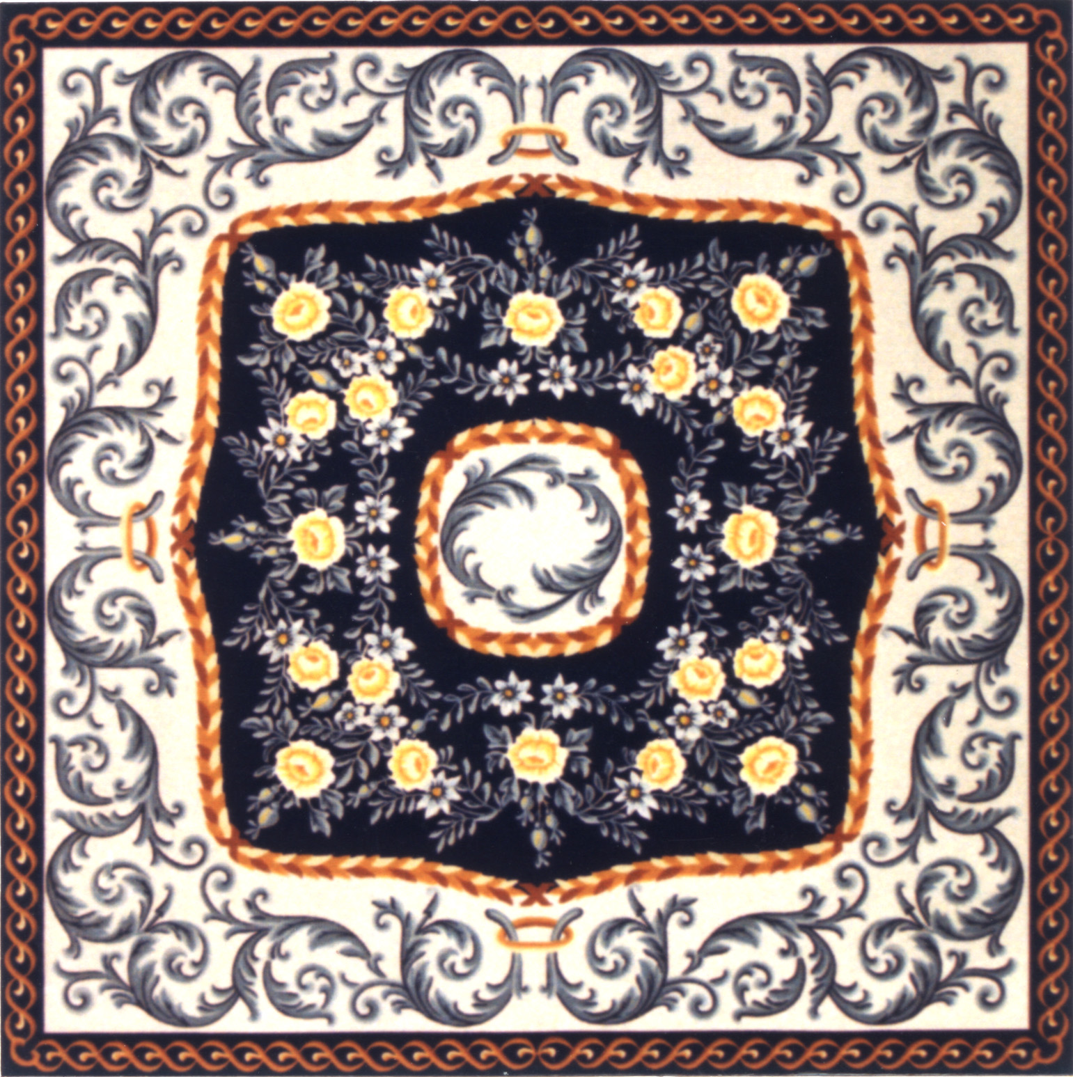 I dipinti sono stampati su tela in kaki N8 o N7 a seconda del disegno, con colore per facilitare il ricamo.