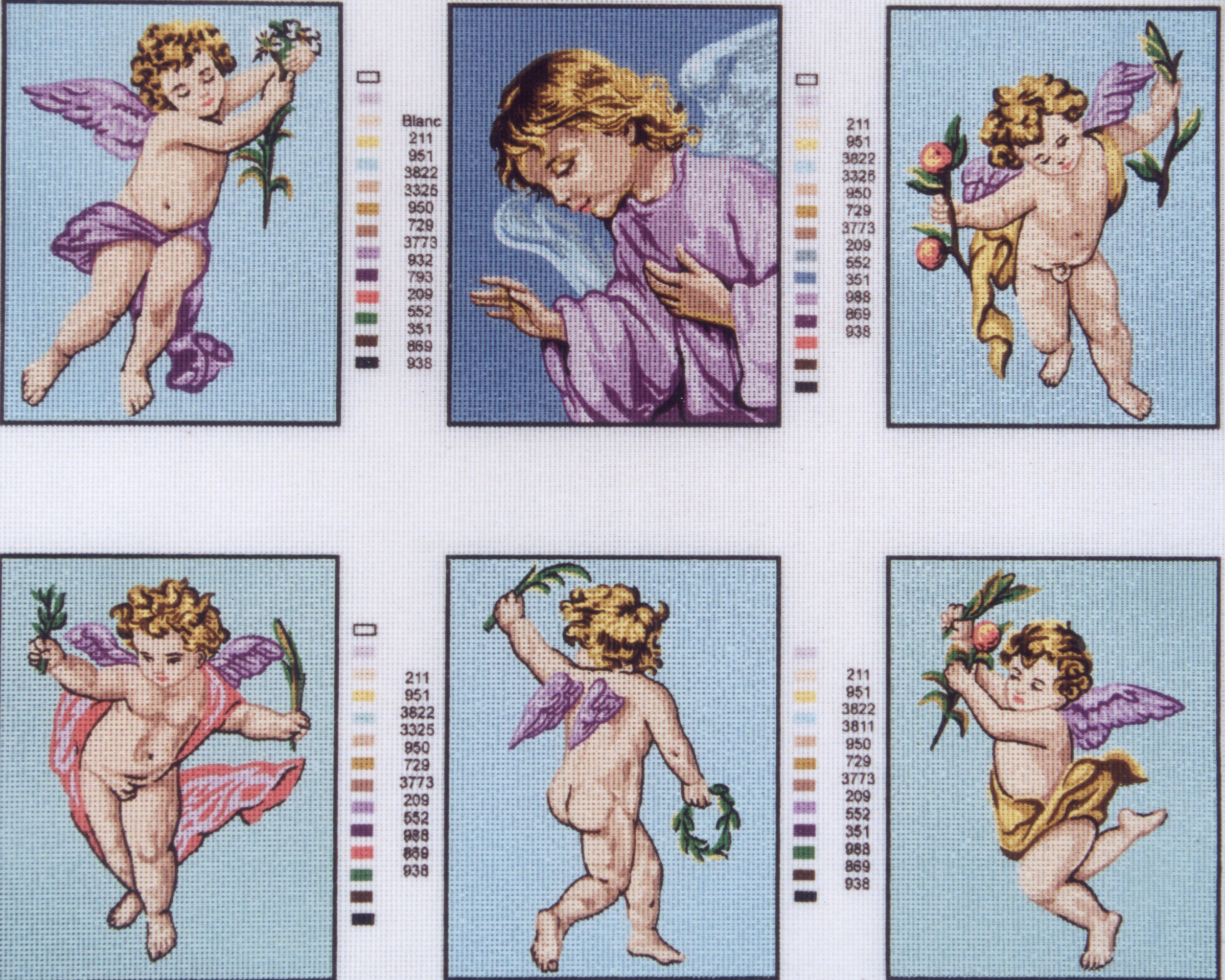 I dipinti sono stampati su tela in kaki N8 o N7 a seconda del disegno, con colore per facilitare il ricamo.