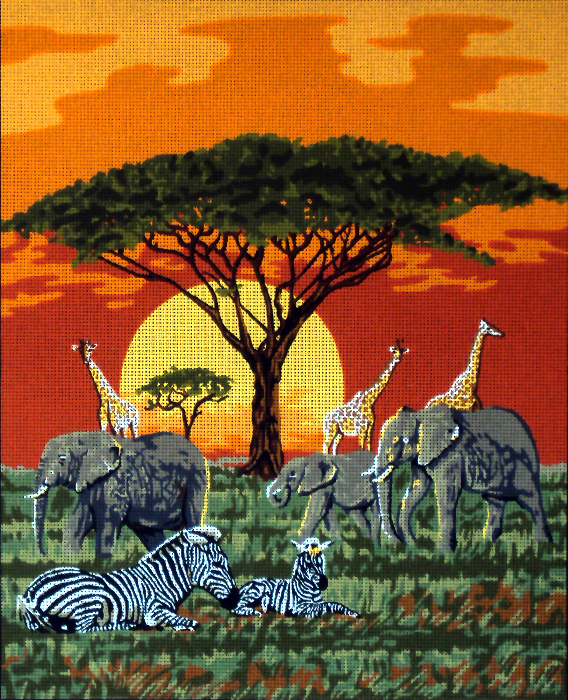 I dipinti sono stampati su tela in kaki N8 o N7 a seconda del disegno, con colore per facilitare il ricamo.