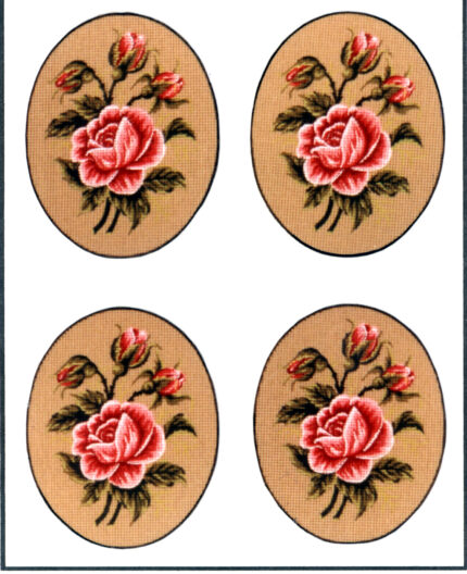 I dipinti sono stampati su tela in kaki N8 o N7 a seconda del disegno, con colore per facilitare il ricamo.