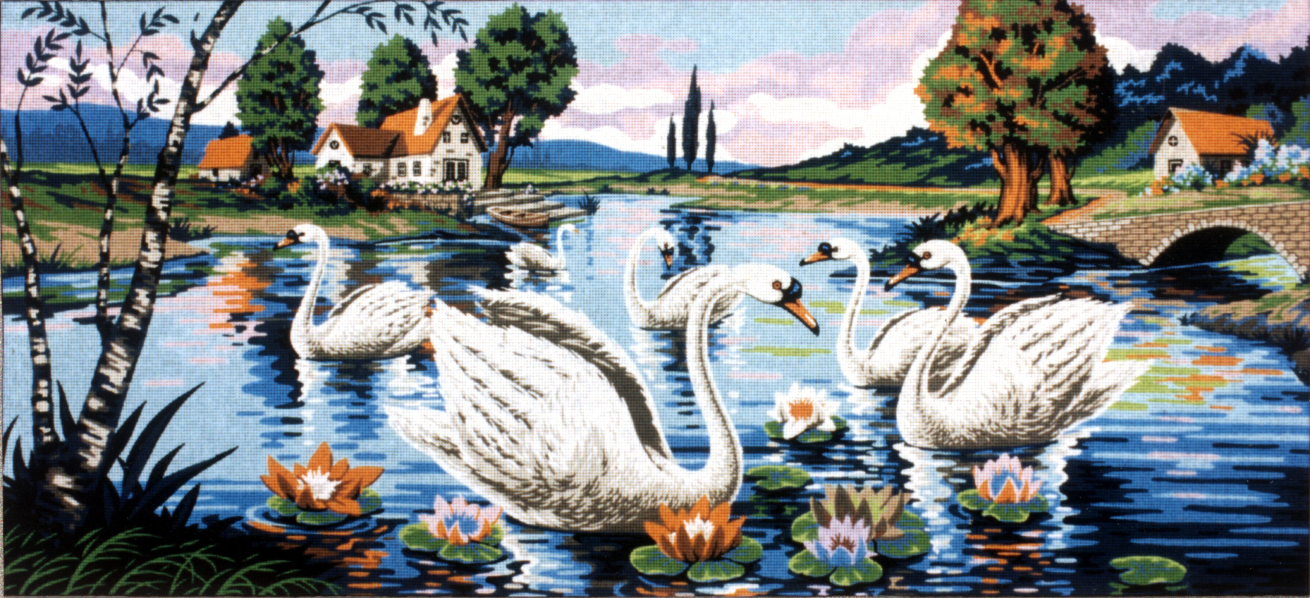 I dipinti sono stampati su tela in kaki N8 o N7 a seconda del disegno, con colore per facilitare il ricamo.