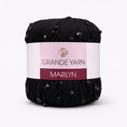 Marilyn by Grande Yarn (50gr., 130m) — βαμβακερό νήμα με ενσωματωμένες χάντρες και πούλιες, διακριτική λάμψη και premium fashion αισθητική. Ιδανικό για κομψές εσάρπες, μπλουζάκια, μπουστάκια, φούστες και statement χειροποίητες δημιουργίες που ξεχωρίζουν ✨🧵