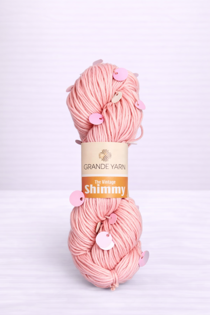 The Vintage Shimmy by Grande Yarn – ένα ιδιαίτερο νήμα με σύνθεση 80% βαμβάκι e 20% χρωματιστές πούλιες, που προσφέρει φυσική υφή e μοναδικό αισθητικό αποτέλεσμα στο πλέξιμο, με 200 μέτρα ανά 100 gr κουβάρι, ιδανικό για καλοκαιρινές δημιουργίες e projects με vintage χαρακτήρα. ✨
