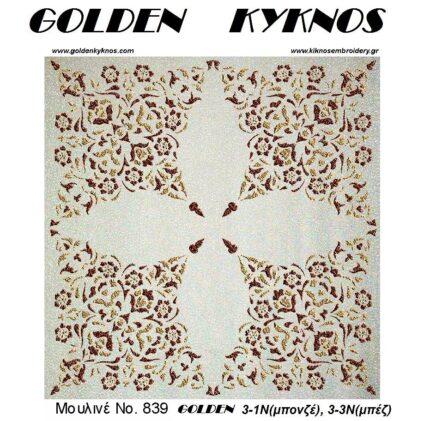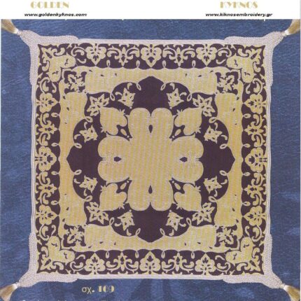 Το κέντημα είναι σταμπωμένο σε ύφασμα – εταμίν μακεδονικό εκρού χρυσό (44 ματάκια στα 10 εκατοστά), και είναι σταμπωμένο γραμμικό (Μονο το βασικό περίγραμμά του σχεδίου, ετσι ώστε να κεντηθεί μετα χρώματα της επιλογής σα; .