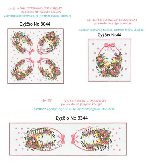 Στα παρακάτω κεντήματα δίνεται η δυνατότητα να επιλέξετε όλο το σέτ η μεμονομένα το κέντημα που σας ενδιαφέρει, με τις κλωστές του η χωρίς τις κλωστές.